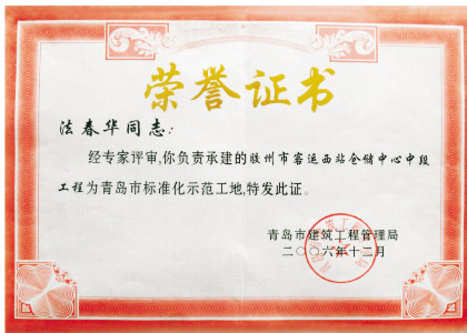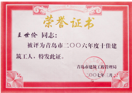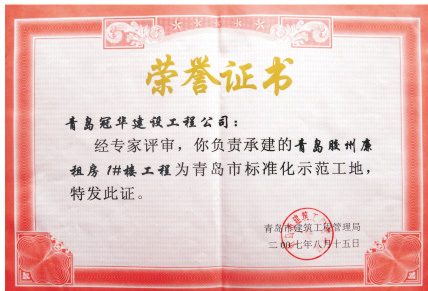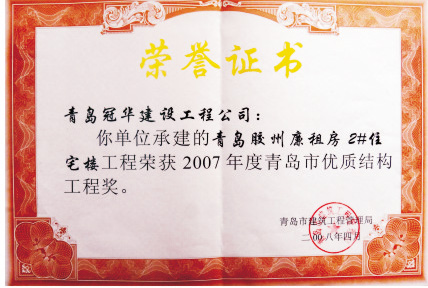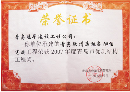 2007年度青島市優(yōu)質(zhì)結(jié)構(gòu)工程獎