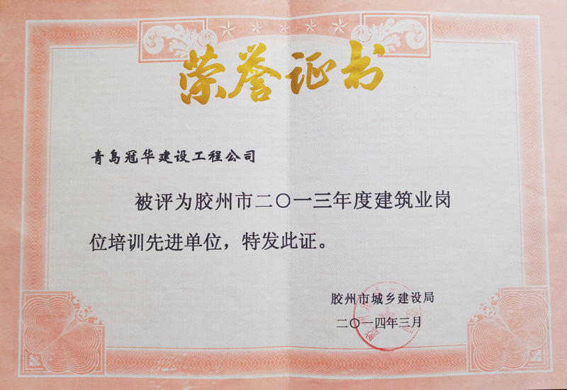 膠州市2013年度建筑業(yè)崗位培訓(xùn)先進(jìn)單位