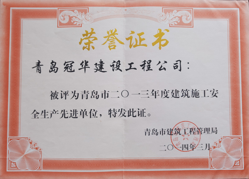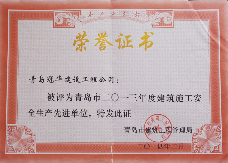 青島市2013年度建筑施工安全生產(chǎn)先進(jìn)單位