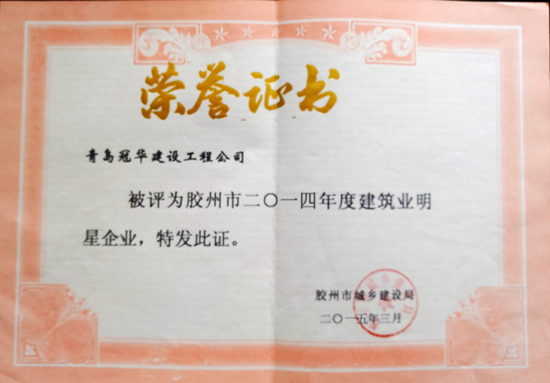 膠州市2014年度建筑業(yè)明星企業(yè)