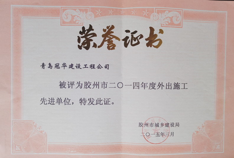 公司被評為膠州市2014年度外出施工先進(jìn)單位