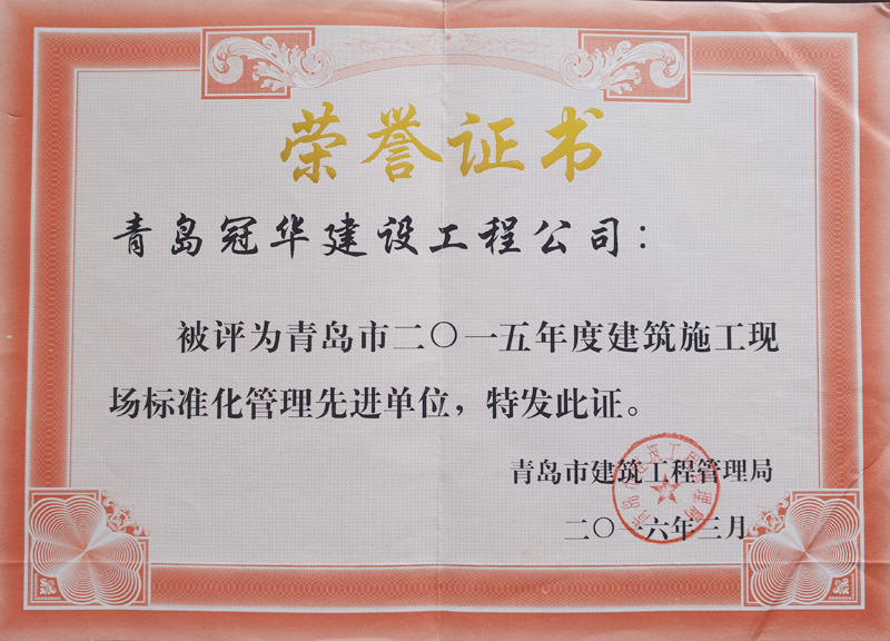 青島市2015年度建筑施工現(xiàn)場標(biāo)準(zhǔn)化管理先進(jìn)單位