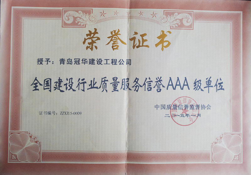 2015全國建設(shè)行業(yè)質(zhì)量服務(wù)信譽(yù)AAA級單位